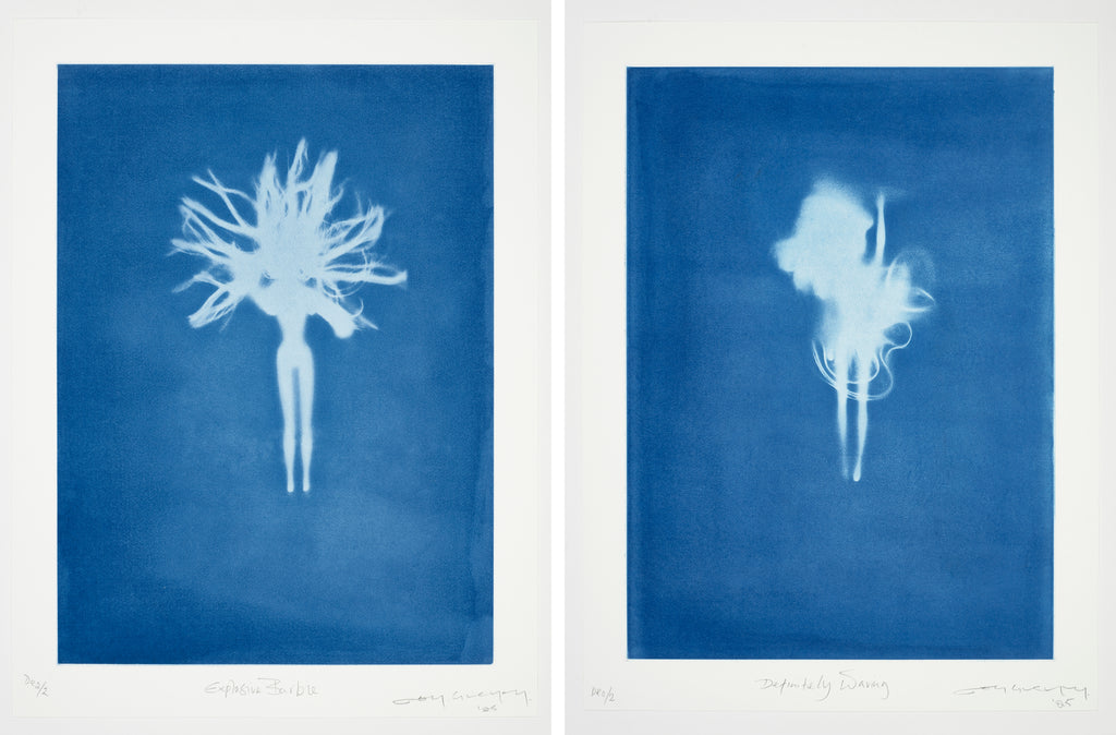 Definitely Waving, 2025 and Explosive Barbie, 2025 connect to the artist’s recent series of cyanotypes, entitled 'Barbie the Golden Years'. For her edition Gregory chose two works from the series, recreating them as photopolymer etchings, each in an edition of 30.